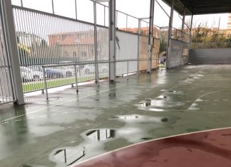 Las malas condiciones para la lluvia de la pista deportiva de...